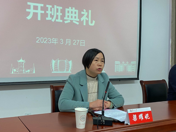 梁耀妮主任作开班动员讲话。她首先对苏州大学为此次培训提供的大力支持和周到安排表示感谢,并结合本次培训的目的和意义,对各位学员提出了具体要求和期望。她希望学员们能够抓住机会,认真学习专业知识,交流分析发展经验,将学到的内容运用到日后的工作中。最后,她预祝本次培训班取得圆满成功。