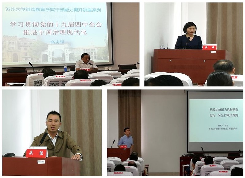 培训围绕学习贯彻党的十九届四中全会,推进中国治理现代化、重大行政决策的法治化、《民法典》解读、行政纠纷解决机制研究以及依法行政建设法治政府等组织教学,并辅以现场教学,深入学习苏州实践,旨在进一步提升法治淮安工作。