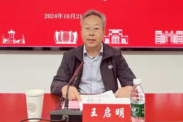 王启明作开班动员。他首先对苏州大学为本次培训做出的安排表示感谢。为确保本次培训顺利进行并取得好的成效,高质量完成本次培训的各项任务,王主任提出三点意见:一是珍惜培训机会,端正学习态度。二是理论联系实际,做到学以致用。三是严守纪律规矩,维护良好形象。最后,他预祝本次培训顺利圆满,祝学员们学习期间心情愉快、工作进步、心想事成!