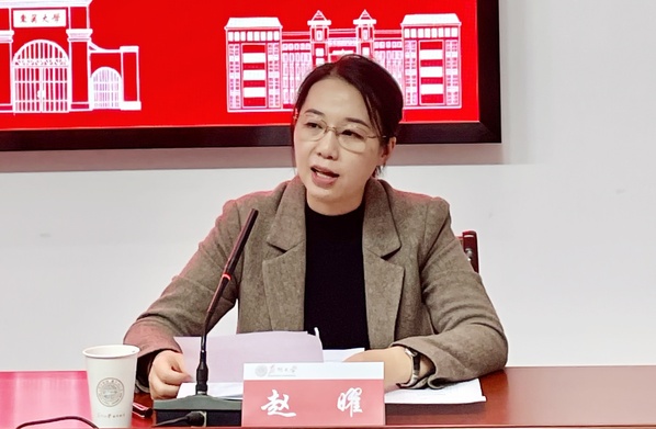 赵曜首先对全体学员的到来表示诚挚欢迎。其次,从“长度、宽度、高度、深度、温度”五个维度阐述了苏州大学在学科建设、人才培养、科学研究、服务社会等方面取得的优异成绩。最后,预祝本次培训圆满完成;祝愿学员们在苏大学习顺利,生活愉快。