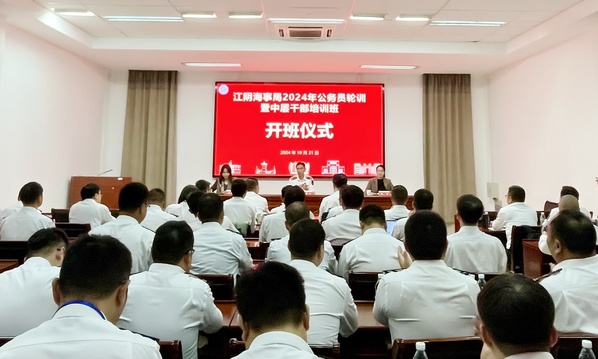 为深入学习贯彻落实党的二十届三中全会精神,提升公务员综合履职能力,增强干部职工的规矩意识和纪律意识。10月21日,江阴海事局2024年公务员轮训暨中层干部培训班在我校顺利举办,来自江阴海事局的56名干部参与此次培训。江阴海事局政委、党委副书记、纪委书记高革人,苏州大学管理培训学院副院长赵曜出席开班仪式。
