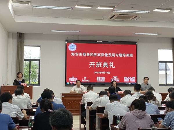 6月17至20日,由苏州大学承办的海安市商务经济高质量发展专题培训班在我校顺利举办。开班典礼于6月18日举行,海安市商务局党组书记、局长陆秋艳,海安市商务局党组副书记、副局长、市投资服务中心主任于雪晴,苏州大学管理培训学院副院长陈星出席。