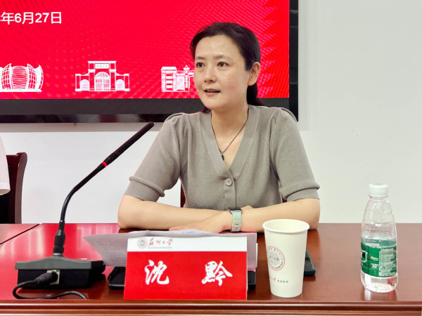 沈黔首先代表苏州大学对参加本次培训的学员表示欢迎。她为各位学员详细介绍了我校百年发展历程,以及目前苏大的学科发展概况。她表示,我校将会聚焦本次培训,持续做好组织与服务工作,希望学员们通过此次培训,更新自身的知识储备,汲取苏州发展经验。希望本次培训能够帮助溧阳市工会干部工作走向精细化,高质量推进工会工作的发展,同时祝福各位学员在苏大的学习和生活顺心、顺利。