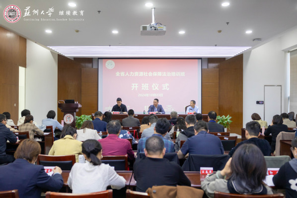 10月23日,全省人力资源社会保障法治培训班在我校顺利开班。来自江苏省人力资源和社会保障系统的73名领导骨干参加了本次培训。江苏省人力资源和社会保障厅政策法规处副处长张猛,苏州大学管理培训学院副院长王健出席了开班仪式。
