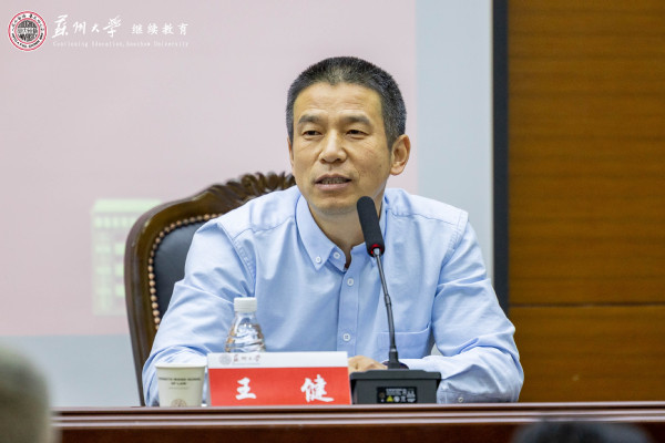 王健首先代表苏州大学对参加本次培训的学员们表示热烈欢迎。他向学员们介绍了苏州大学的发展历程,包括我校在学科建设、人才培养、办学规模等方面所取得的优秀成果,以及在管理培训等方面的办学优势。此外,他还为大家介绍了苏州的风土人情与经济建设。他表示,我校将持续做好培训服务工作,希望大家在培训期间能够认真学习,积极参与各项课程。最后,他预祝本次培训取得圆满成功。