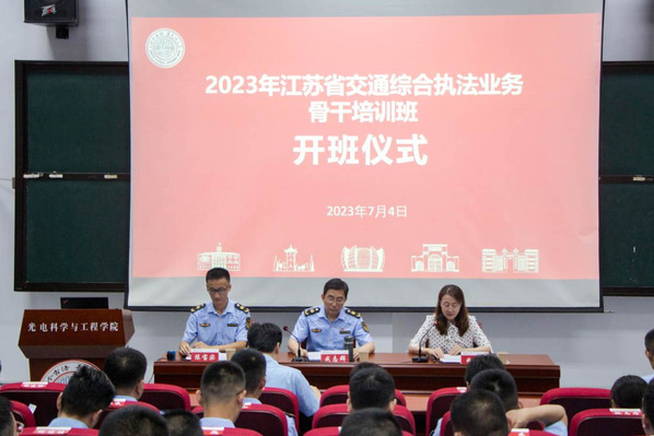 炎炎夏季,如“七”而至。7月4日,由江苏省交通运输综合行政执法监督局主办,苏州大学承办的“江苏省交通综合执法业务骨干培训班”在我校顺利开班。来自全省交通综合执法机构的85位骨干参加本次培训。江苏省交通运输综合行政执法监督局综合处二级调研员戚志群,苏州大学管理培训学院副院长曲宏出席了开班仪式,仪式由江苏省交通运输综合行政执法监督局综合处政策法规科科长陈宝宓主持。