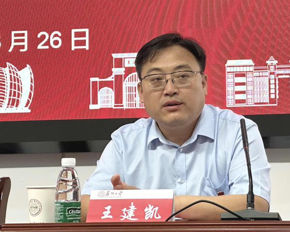 王建凯致欢迎辞,他首先对学员们的到来表示热烈的欢迎,并向学员们介绍了苏州大学的百年发展历程,包括我校在学科建设、转型聚力、人才培养等方面的优势,以及苏州大学管理培训学院的办学概况和办学特色。他还介绍了苏州悠久的历史和近年来的整体发展,希望在本次培训期间,学员们在提升专业素质的同时,也能深入了解苏州这座城市深厚的文化底蕴。