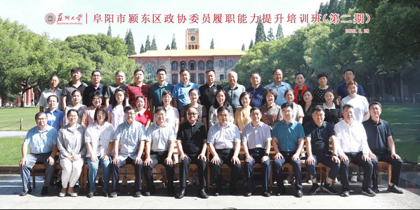 6月25日至7月1日,由苏州大学承办的“阜阳市颍东区政协委员履职能力提升培训班(第二期)”在我校顺利举办。来自阜阳市颍东区政协的40名学员参加本次培训。阜阳市颍东区政协主席刘雷振,副主席陈志军,副主席董强,副主席陈怀友,苏州大学管理培训学院常务副院长王建凯出席了开班典礼。