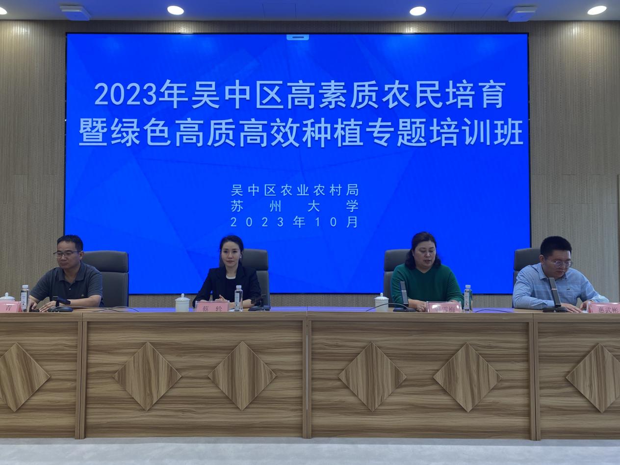 10月19日,由吴中区农业农村局举办,苏州大学承办的2023年吴中区高素质农民培育暨绿色高质高效专题培训班顺利开班了,来自吴中区的50名高素质农民参加培训。