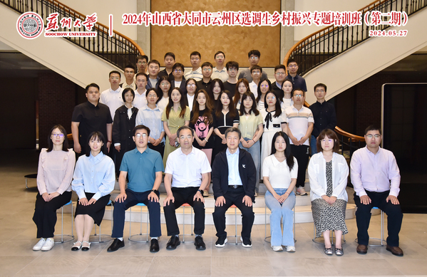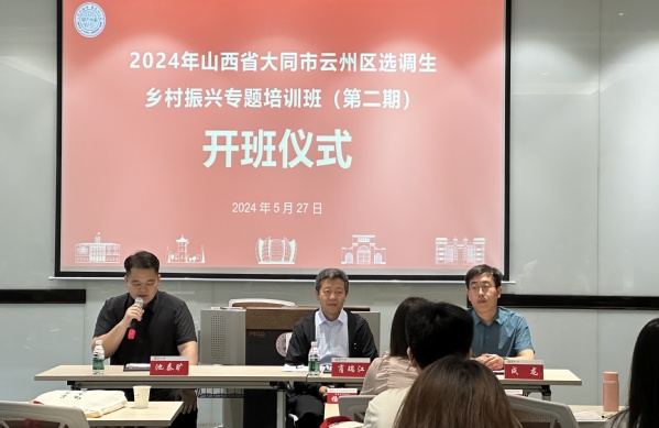 5月27日,2024年山西省大同市云州区选调生乡村振兴专题培训班(第二期)在我校顺利开班。来自大同市云州区的34位领导干部参加了本次培训。云州区委组织部副部长、老干部局局长肖瑞江,苏州大学管理培训学院副院长成龙出席了开班仪式。