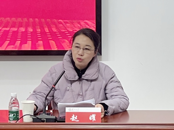 赵曜致欢迎辞。她首先对参加本次培训的学员表示热烈欢迎,并向学员介绍了苏州大学的百年发展历程以及其前身东吴大学的历史,包括在学科建设、人才培养、科学研究以及社会服务等方面取得的成果。她希望各位学员能够不虚此行,学有所获、学以致用。最后,预祝此次培训圆满完成,各位学员在苏学习期间一切顺利。