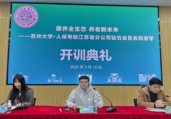 3月15日至16日,“康养全生态、养老新未来”钻石会员名校游学活动在苏州大学天赐庄校区顺利举办。江苏省分公司的150余名钻石会员们参与了本次游学活动。人保寿险江苏省分公司副总经理陶克平、业务发展部总经理杨强,苏州大学管理培训学院副院长朱颖康出席了本次开训、结训仪式。