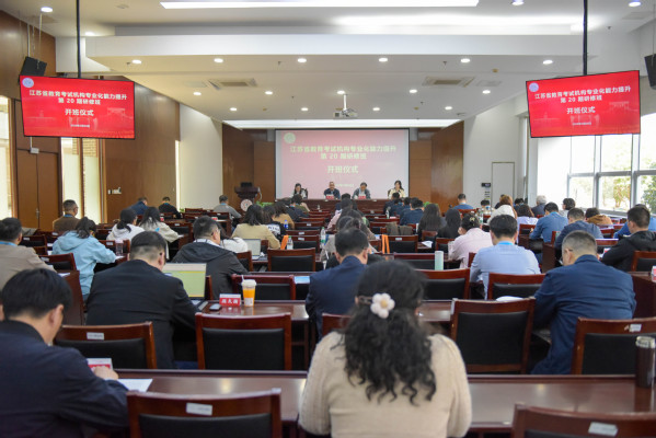 3月24日,江苏省教育考试机构专业化能力提升第20期研修班开班仪式在我校顺利举行。来自省教育考试院各处室、全省各地市考试机构、高校招生条线的70名学员参加培训。我校党委常委、副校长查佐明,江苏省教育考试院党委委员、副院长吴成兵出席了开班仪式。