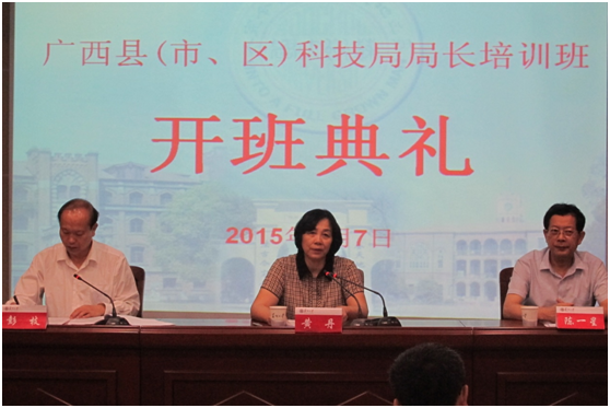 广西科技厅党组书记黄丹,苏州大学党委常委、副校长陈一星出席开班仪式。开班仪式由广西科技厅副巡视员彭枝主持。