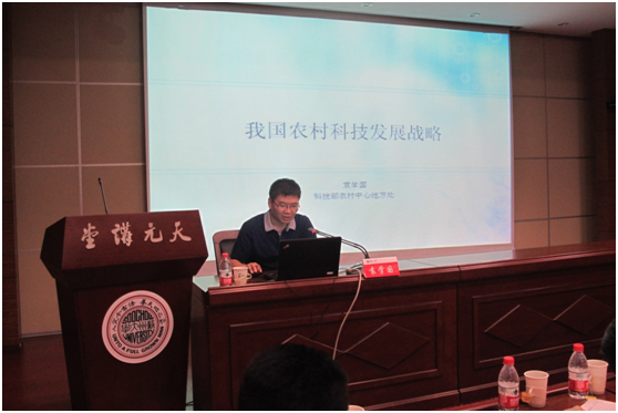 中国农村技术开发中心地方科技工作处副处长袁学国为学员们授课