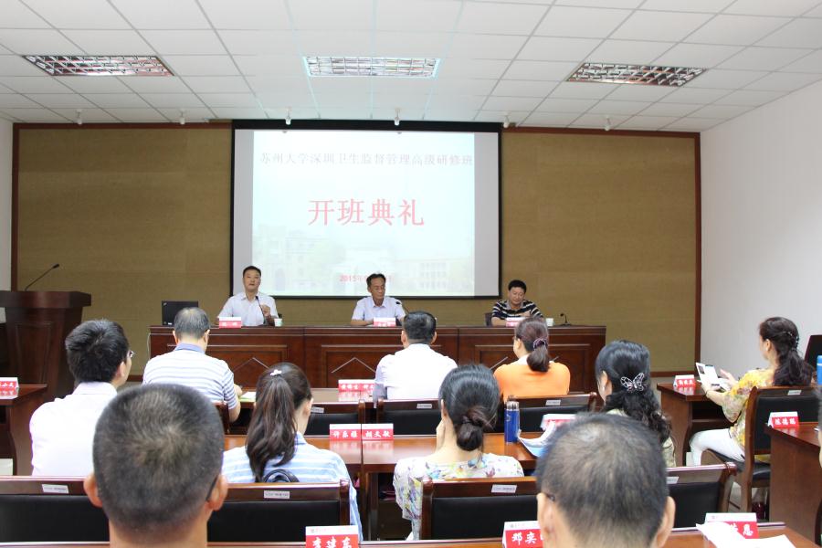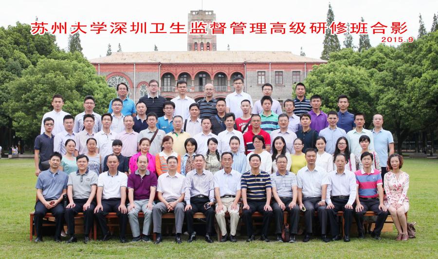 2015年9月13日-9月24日,深圳卫生监督管理(苏州大学)高级研修班在苏州大学继续教育学院顺利举行。来自深圳市卫生监督系统的60名管理干部参加此次培训。深圳市卫生监督局副局长黄锦生,苏州大学继续教育学院副院长吴建军出席开班仪式。
