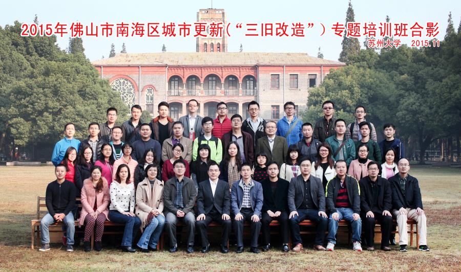 2015年11月2日-11月6日,2015年佛山市南海区城市更新(“三旧”改造)专题培训班在苏州大学继续教育学院顺利举行。来自佛山市的46名干部参加此次培训。