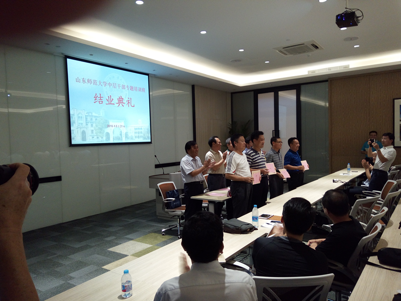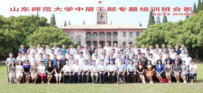 2016年8月18日-8月22日,山东师范大学中层干部专题培训班在苏州大学继续教育学院顺利举行,本次培训由我校材料与化学化工学部承办。由山东师范大学党委书记商志晓和三位副校长带队,各学院院长、书记,各科研院所主任、所长,相关部门正职及部分分管副职共88位中层管理人员参加了此次培训。开班典礼邀请了苏州大学王卓君书记致辞。