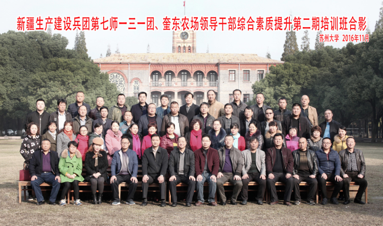 2016年11月27日-12月3日,新疆生产建设兵团第七师一三一团、奎东农场领导干部综合素质提升第二期培训班在苏州大学干部培训中心顺利举行。本次培训班由我校材料与化学化工学部承办。