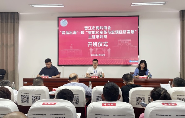 4月18日下午,晋江市梅岭商会“晋品出海”和“智能化变革与宏观经济发展”主题培训班在我校顺利开班。来自晋江市梅岭街道办及商会领导共41位学员参加了本次培训。晋江市梅岭街道党工委宣传委员、武装部长黄振杰,苏州大学管理培训学院副院长鲍小娟出席本次开班仪式。
