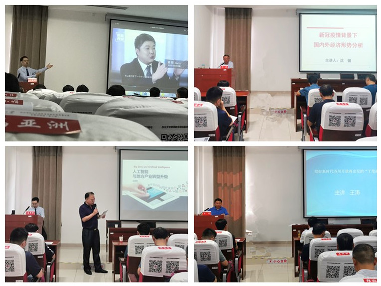 课程安排方面采用理论课堂和现场教学相结合的方式。专家教授们将前沿理论与地方经济相结合,带来新冠疫情形势下国内外经济形势、人工智能与地方产业转型升级、互联网+时代的新兴产业培育、高质量发展理论内涵与苏州实践、产业集群与区域经济发展等课程内容。