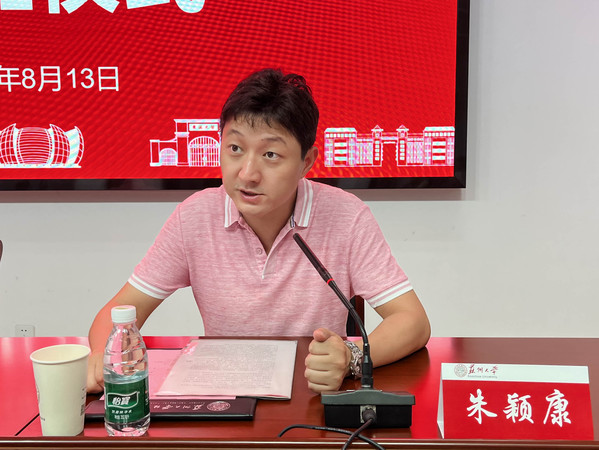 朱颖康致欢迎辞,并向学员们介绍了苏州大学的百年发展历程,以及我校在学科建设、人才培养、科学研究、服务社会等方面所取得的优异成绩和开展教育培训的特色优势。最后,他预祝此次培训圆满完成,各位学员学有所获。