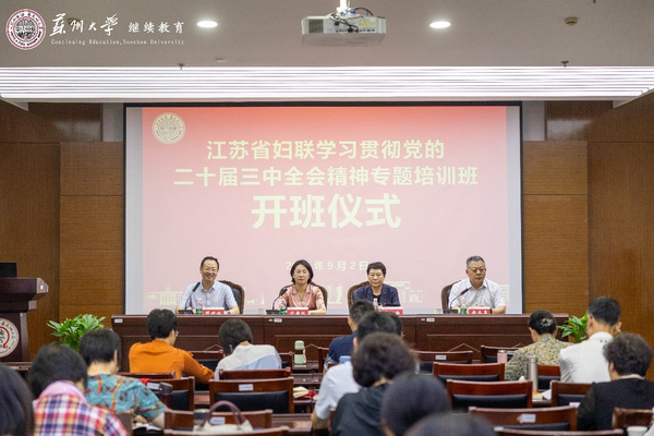 为深入学习贯彻党的二十届三中全会精神,在更高起点上推进妇联工作高质量发展,9月2日下午,江苏省妇联学习贯彻党的二十届三中全会精神专题培训班在我校顺利开班。来自江苏省妇联机关、直属单位的52名党员干部参加了此次培训。江苏省妇联党组成员、副主席许超仪,省妇联一级巡视员沈梅,苏州大学继续教育学院院长缪世林出席了开班仪式,仪式由江苏省妇联机关党委副书记、机关纪委书记俞志勇主持。