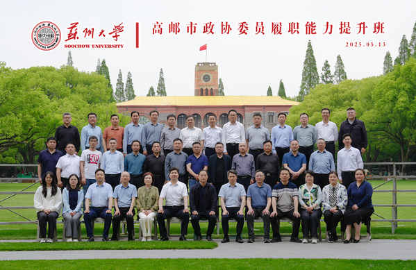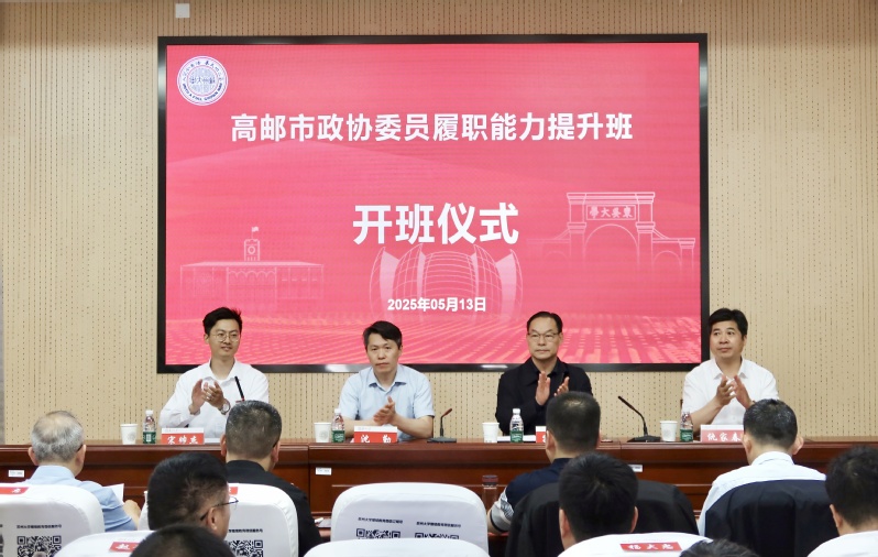 5月13日,高邮市政协委员履职能力提升班在苏州大学天赐庄校区顺利开班,中国人民政治协商会议江苏省高邮市委员会共38名干部参加此次培训。高邮市政协党组副书记、副主席孙禹文,高邮市政协党组成员、秘书长、办公室主任仇家春,苏州大学管理培训学院副院长沈勤出席了本次开班仪式。