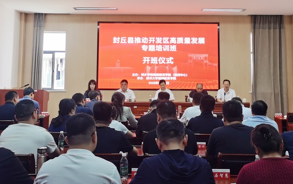 为深入贯彻落实习近平总书记关于县域经济发展的重要论述,高质量推进封丘县开发区平台建设,抢抓县域经济发展战略机遇。5月19日,由新乡学院继续教育学院(培训中心)主办、苏州大学继续教育学院承办的“封丘县推动开发区高质量发展专题培训班”正式开班。封丘县委常委、组织部部长张春燕,封丘县副县长王志魁,苏州大学继续教育学院院长缪世林,新乡学院继续教育学院院长田大治,新乡学院继续教育学院副院长田贝贝出席了开班仪式。来自封丘县县直单位、重要科室、开发区管委会及重要企业的47名学员参加培训。