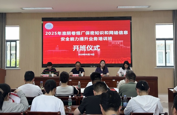 5月19日下午,由苏州大学承办的2025年淮阴卷烟厂保密知识和网络信息安全能力提升业务培训班在我校顺利举办。来自淮阴卷烟厂的45名干部参加了此次培训,淮阴卷烟厂信息中心副主任周稀乔,淮阴卷烟厂办公室(外事办)副主任张洪霞,苏州大学管理培训学院副院长王晴出席开班仪式。