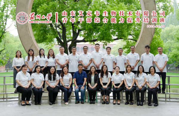 5月23日,山东艾克韦生物技术有限公司青年干部综合能力提升培训班在苏州大学天赐庄校区顺利开班。来自山东艾克韦生物技术有限公司的24名青年干部参加了此次培训,山东艾克韦生物技术有限公司副总经理刘姗姗出席开班仪式并作动员讲话,苏州大学管理培训学院副院长张志平致欢迎辞。