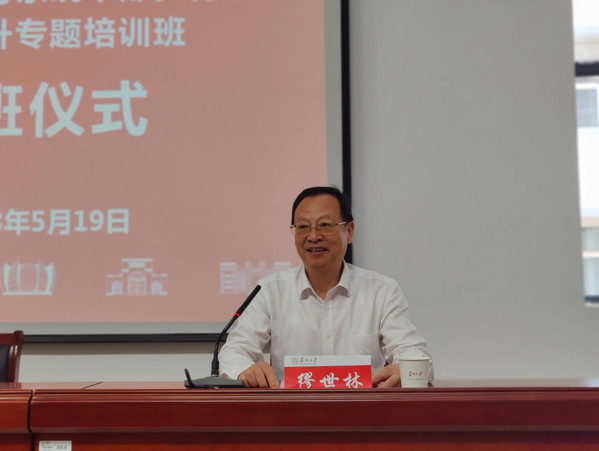 缪世林首先代表苏州大学对各位学员表示热烈欢迎,并向学员们介绍了苏州大学的百年发展历程,包括我校在学科建设、人才培养、科学研究等方面取得的优异成绩,同时还介绍了苏州大学乡村振兴培训学院的办学概况和开展教育培训的特色优势。他还从“金鸡湖边搞经济、独墅湖畔好读书、阳澄湖畔好养生”几个方面介绍了苏州的风土人情、地方特色、文化资源,以及苏州在文化传承与经济建设方面的独到经验。最后,他预祝此次培训圆满成功,各位学员在苏期间的学习生活一切顺利。