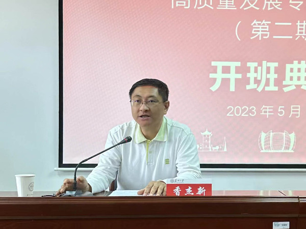 香杰新作开班动员讲话。他首先感谢苏州大学对此次培训的认真筹备和精心组织。他强调了此次远学苏州对推动石碣镇党政领导干部高质量发展的重要性,希望学员们能够通过此次培训汲取、借鉴宝贵经验,增强适应石碣镇发展要求的能力。他就此次培训对学员们提出了具体要求,希望大家能够珍惜此次难得的学习提升机会、严格遵守学校纪律、班级纪律,探寻苏州高质量发展“密码”,将“他山之石”转化为自身发展动力。