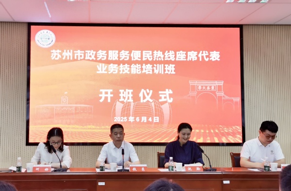 为进一步提高苏州市政务热线工作科学化、规范化、专业化水平,打造一支素质高、业务精、能力强的专业化座席代表队伍。6月4日,苏州市政务服务便民热线座席代表业务技能培训班正式开班。来自苏州市政务服务便民热线和市相关单位的100名政务热线坐席代表参加了本次培训。苏州市便民服务中心副主任钱亮,苏州大学管理培训学院副院长沈黔,苏州大学管理培训学院培训中心项目主任王缘出席了开班仪式。仪式由苏州市便民服务中心热线科副科长何姗主持。
