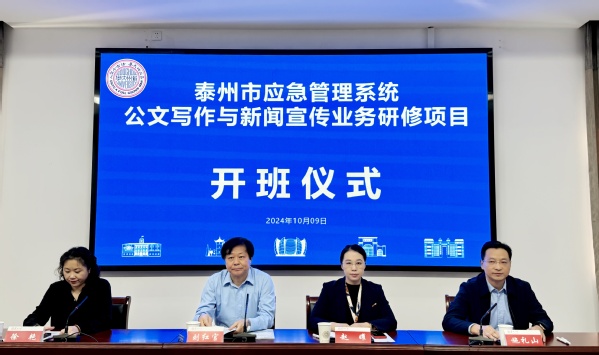 金秋十月,丹桂飘香。10月9日,由泰州学院与我校共同承办的泰州市应急管理系统公文写作与新闻宣传业务研修班顺利开班,来自江苏省泰州市的54名学员参加了此次培训。泰州市应急管理局二级调研员刘红官,苏州大学管理培训学院副院长赵曜,泰州学院信息工程学院副院长徐艳出席了开班仪式。开班仪式由泰州市应急管理局办公室主任施礼山主持。