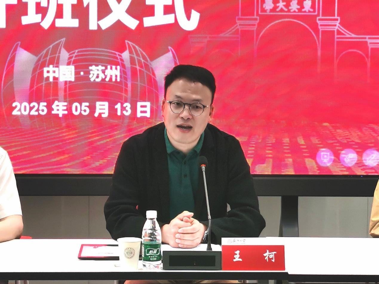开班仪式上,王柯对全体学员的到来表示诚挚欢迎。首先,他向学员们介绍了苏州大学的悠久历史,包括我校在学科建设、人才培养、科学研究、服务社会等方面取得的优异成绩。最后,他祝愿学员们在苏大学习顺利,生活愉快。