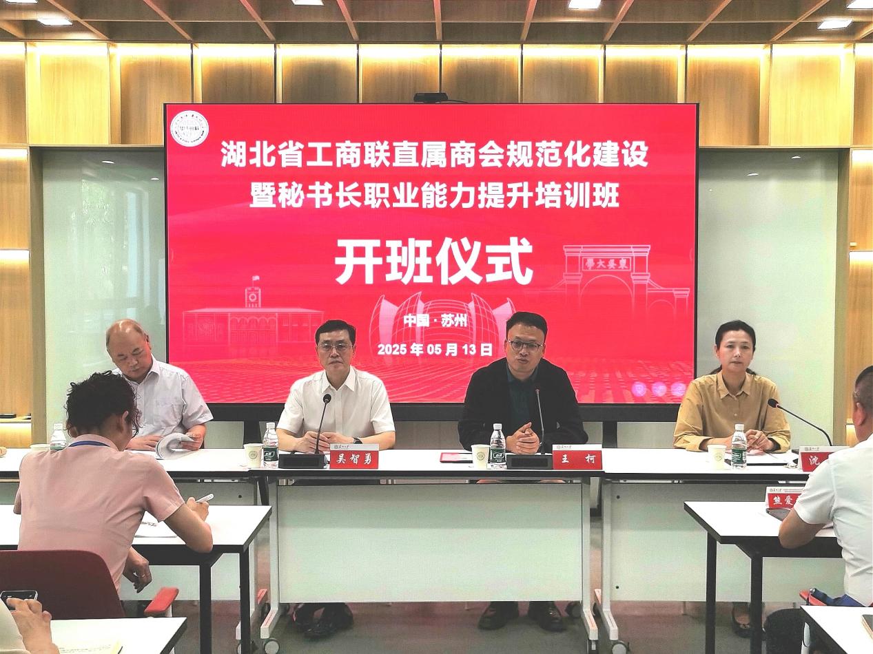 5月13日,由苏州大学承办的湖北省工商联直属商会规范化建设暨秘书长职业能力提升培训班在我校顺利举办。来自湖北省工商联直属商会的75名优秀秘书长参与此次培训。湖北省工商联党组成员、副主席吴智勇,苏州大学艺术学院院长王柯,湖北省工商联会员部部长樊孝辉,苏州大学管理培训学院副院长沈黔出席开班仪式。