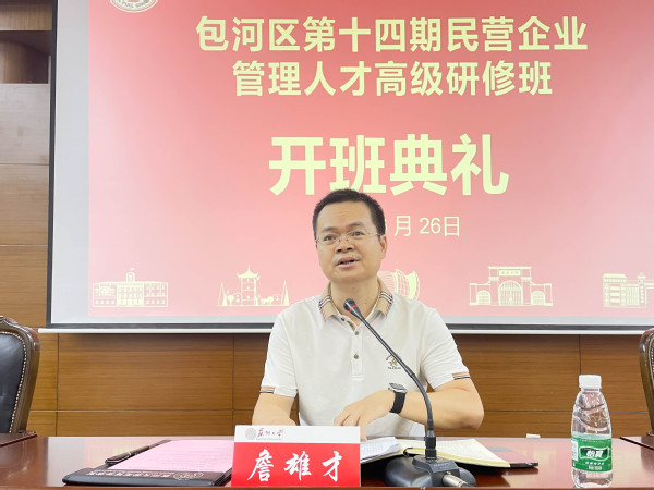 6月26日,由苏州大学承办的安徽省合肥市包河区第十四期民营企业管理人才高级研修班在我校顺利开班。来自安徽省包河区工商联及民营企业的60位学员参加了此次培训。包河区委统战部副部长、区工商联党组书记、常务副主席詹雄才,包河区工商联副主席田虹,苏州大学管理培训学院副院长曲宏出席了开班仪式,仪式由詹雄才主持。