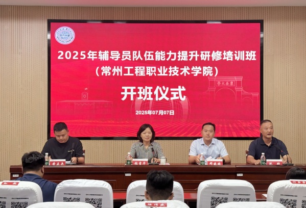 7月7日,常州工程职业技术学院2025年辅导员队伍能力提升研修培训班在我校正式启动。本次培训为期三天,共有31名优秀辅导员参训。苏州大学继续教育学院副院长沈晔,常州工程职业技术学院党委书记、副校长张雪华,学工部部长邓晓斌,学工部副部长黄正兵出席了此次开班仪式。