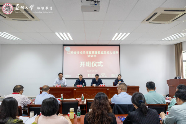 为进一步提高江苏省特检院系统管理人员素质能力和业务水平,增强责任意识、底线意识和纪律意识,10月16日上午,江苏省特检院系统行政管理及应急能力提升培训班在我校顺利开班。来自江苏省特检院近100名行政管理人员参加了此次培训。江苏省国家保密局副局长李靖,江苏省特种设备安全监督检验研究院副院长宋高峰,苏州大学党委副书记邓敏出席了开班仪式,仪式由苏州大学管理培训学院副院长赵曜主持。