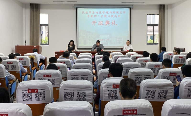2020年10月13日上午,民航华东地区管理局新闻宣传专兼职人员能力提高班在我校培训中心104举行开班仪式。民航华东地区管理局党委办公室叶挺、苏州大学干部培训学院副院长徐冉出席开班式。