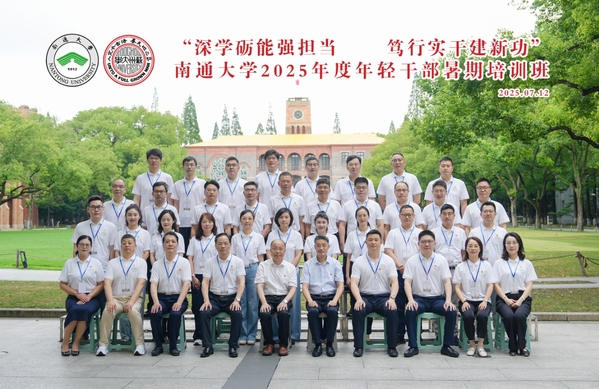 为落实江苏省委关于年轻干部培养要求,全面提升南通大学年轻干部的政治素养、履职能力和担当精神。7月11日至15日,“深学砺能强担当 笃行实干建新功”2025年度南通大学年轻干部暑期培训班在我校成功举办。来自南通大学的41名干部参加了此次培训,南通大学党委书记杨宇民、党委副书记王卫东,苏州大学党委副书记邓敏,南通大学党委常委、组织部部长吴如高出席此次开班仪式。
