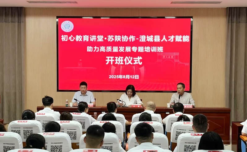 8月12日,初心教育讲堂·苏陕协作—澄城县人才赋能助力高质量发展专题培训班在我校顺利开班。来自澄城县教育、卫健、发改、金融、商务、文旅等系统和部门的65位学员参加了本次培训。中共澄城县委组织部部务委员王静,苏州大学文学院副院长周生杰出席了开班仪式。