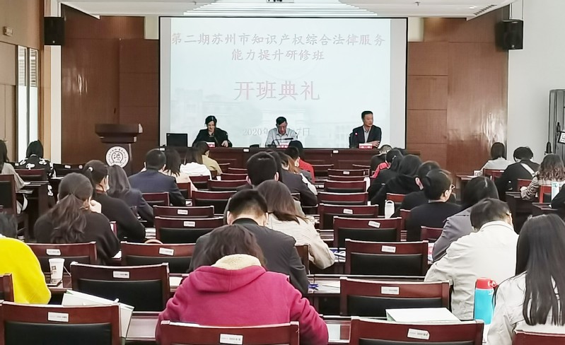 2020年10月17日至10月18日、10月24日,第二期苏州市知识产权综合法律服务能力提升研修班在苏州大学王健法学院中式模拟法庭顺利结业。10月17日上午8:30时,全体学员在苏州大学王健法学院中式模拟法庭参加了开班典礼。苏州市司法局公证管理处副处长、苏州市知识产权综合法律服务中心主任罗文军、王健法学院副院长沈晔参加开班典礼。本次开班典礼由王健法学院武晓莉老师主持。
