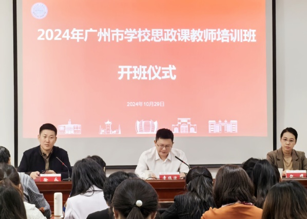 在这惠风和畅、秋高气爽,这充满收获的季节里,10月28日至11月1日,2024年广州市学校思政课教师培训班在我校圆满落幕。来自广州市11个区、50个行政或教学单位,共计50名思政课教师参加了此次培训。广州市教育局宣传与思想政治教育处副处长童振波,苏州大学管理培训学院副院长赵曜,苏州大学文学院培训中心主任徐永出席了开班仪式。
