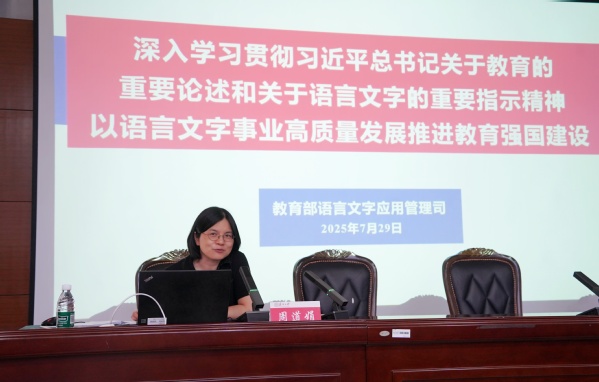 开班仪式结束后,由教育部语用司二级巡视员周道娟带来题为“深入学习贯彻习近平总书记关于教育的重要论述和关于语言文字的重要批示精神,以语言文字事业高质量发展推进教育强国建设”的第一场专题报告,学员们认真聆听、反响热烈。