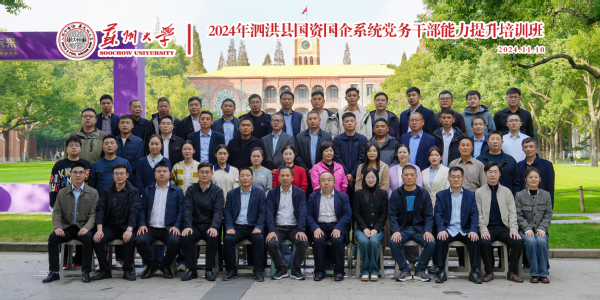 11月10日下午,2024年泗洪县国资国企系统党务干部能力提升培训班在我校顺利开班。来自江苏省宿迁市泗洪县的49名国资国企系统党务干部参加了此次培训。宿迁市泗洪县财政局党委委员、副局长刘波,苏州大学管理培训学院副院长周义程出席了开班仪式。