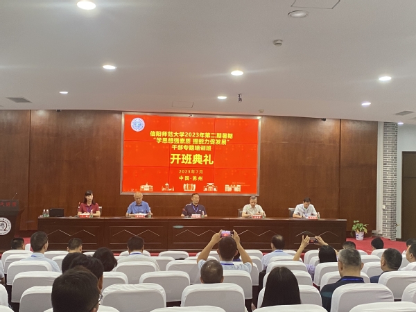 7月30日至8月5日,由苏州大学承办的信阳师范大学2023年第二期暑期“学思想强素质 提能力促发展”干部专题培训班在我校顺利举办。来自信阳师范大学校领导、各行政部门及二级学院的140多位中层副职干部参加了本次培训。