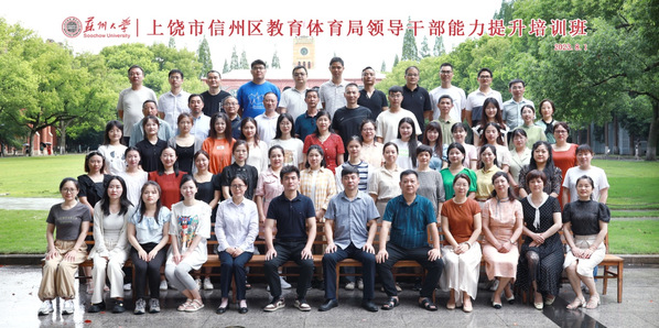 7月31日至8月5日,由苏州大学承办的上饶市信州区教育体育局领导干部能力提升培训班在我校顺利举办,来自上饶市信州区教育体育局的60名学校领导和骨干教师参加了此次培训。开班典礼于8月1日举行,上饶市信州区教育体育局办公室主任王贤彬出席。