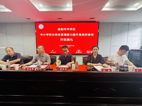 8月2日上午,由苏州大学承办的信阳市平桥区中小学校长综合管理能力提升高级研修班在我校顺利开班,来自信阳市58名中小学校长参加此次培训。信阳市平桥区教育体育局党组成员、二级主任科员熊纯良,信阳市平桥区教育体育局党组成员、工会主席杨志辉,信阳市平桥区教育体育局一级主任科员董付成,苏州大学管理培训学院副院长沈黔出席了开班典礼。
